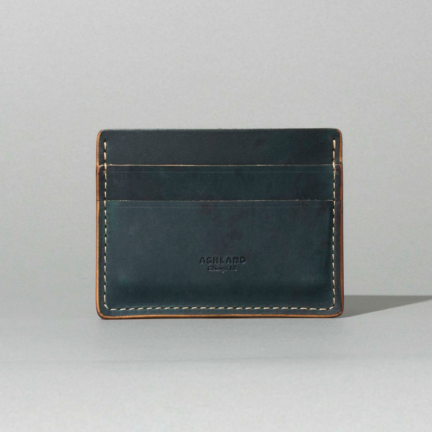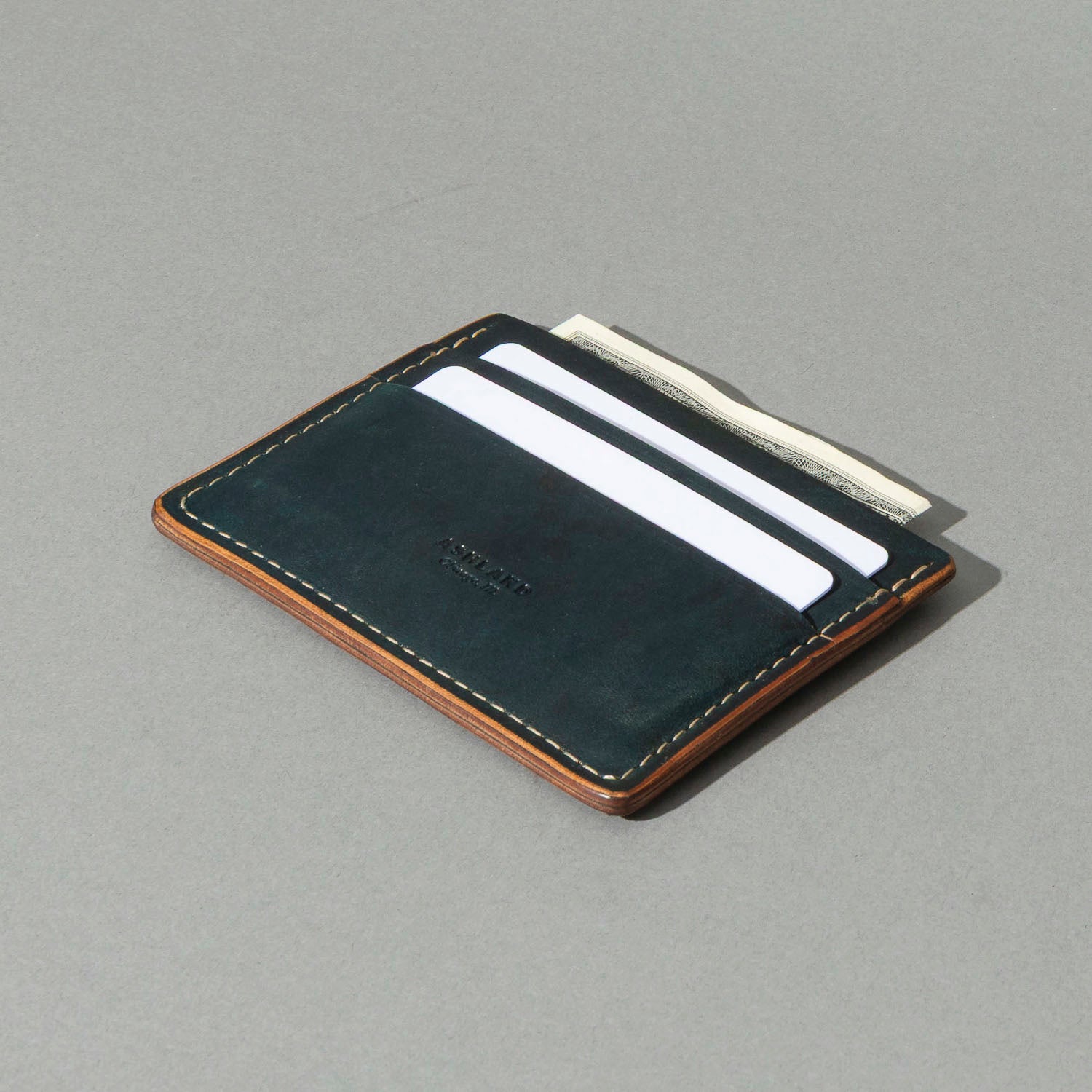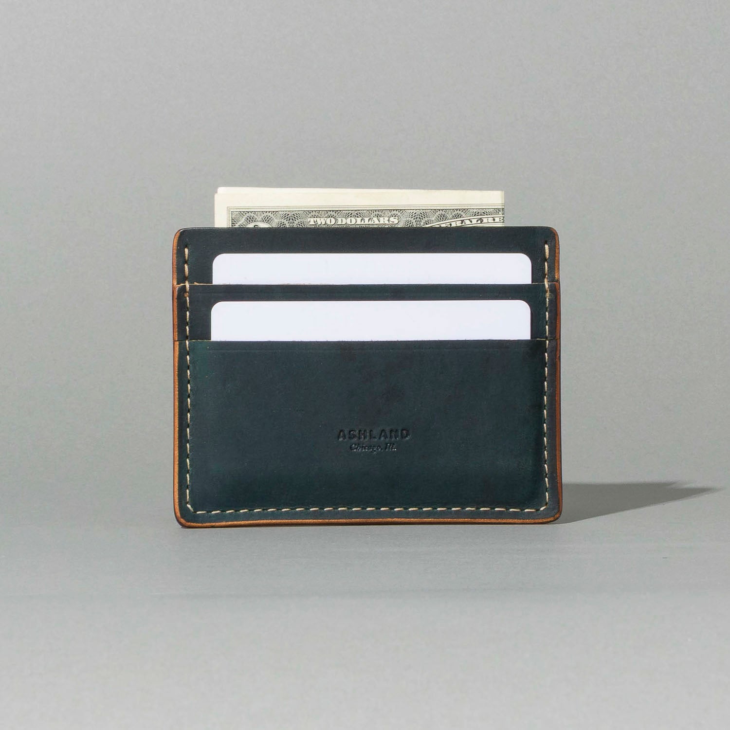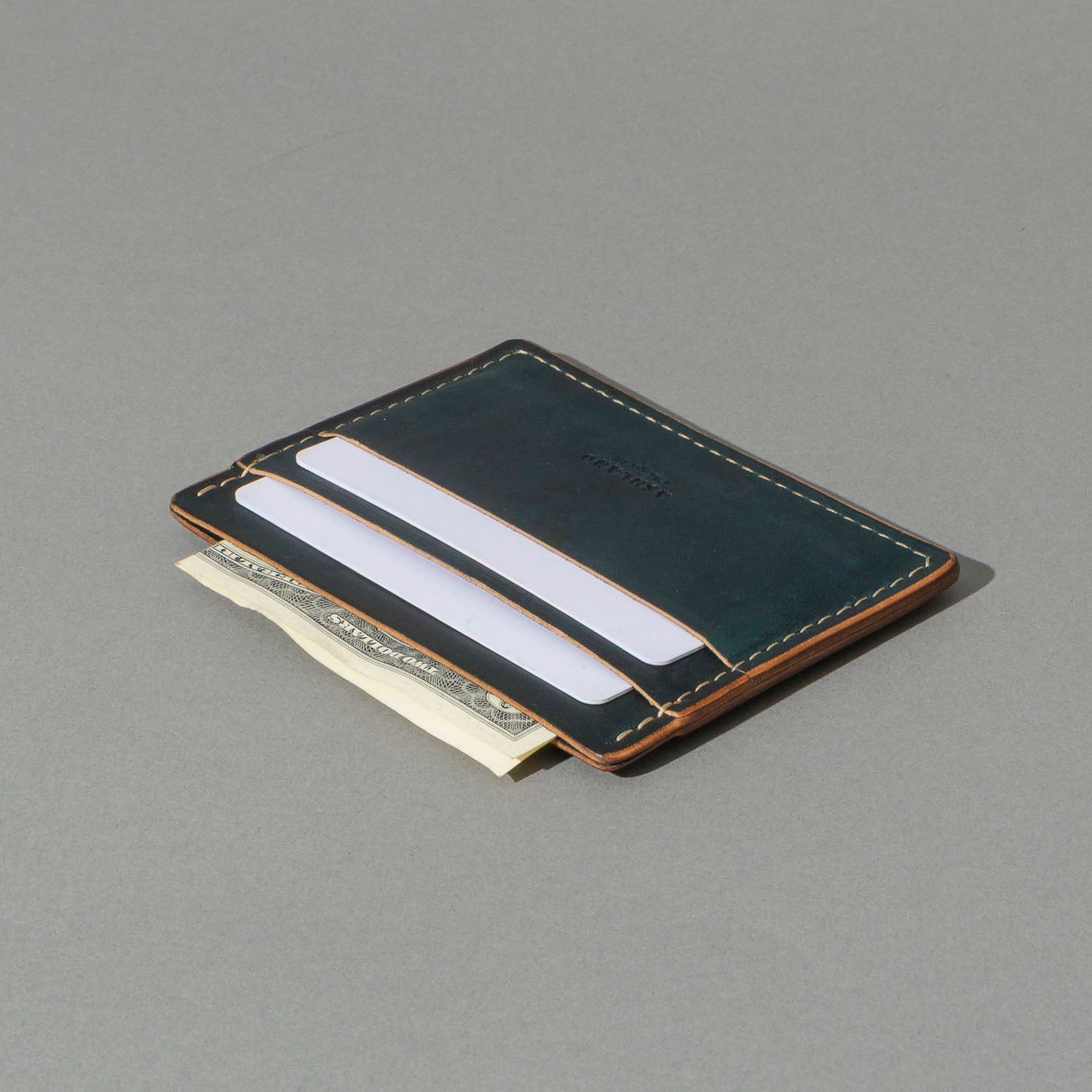 Extra card slot on the back. The ultimate minimalist leather card holder in a classic style. Handmade in Chicago from the finest Horween® leather. Frank the Enforcer provides the muscle for your essential cards and even a few folded bills in the large, middle slot.