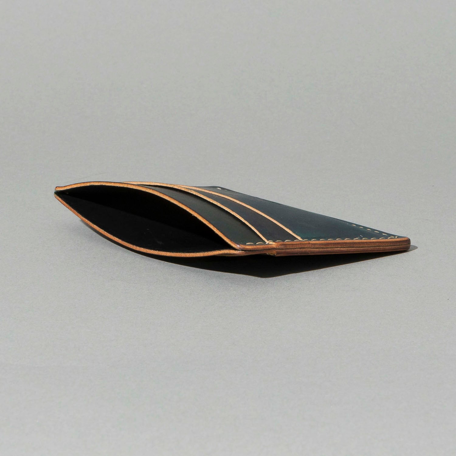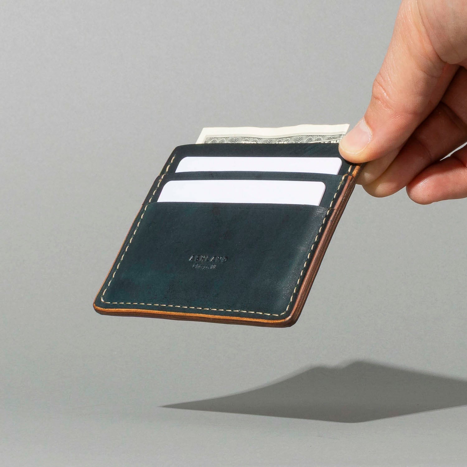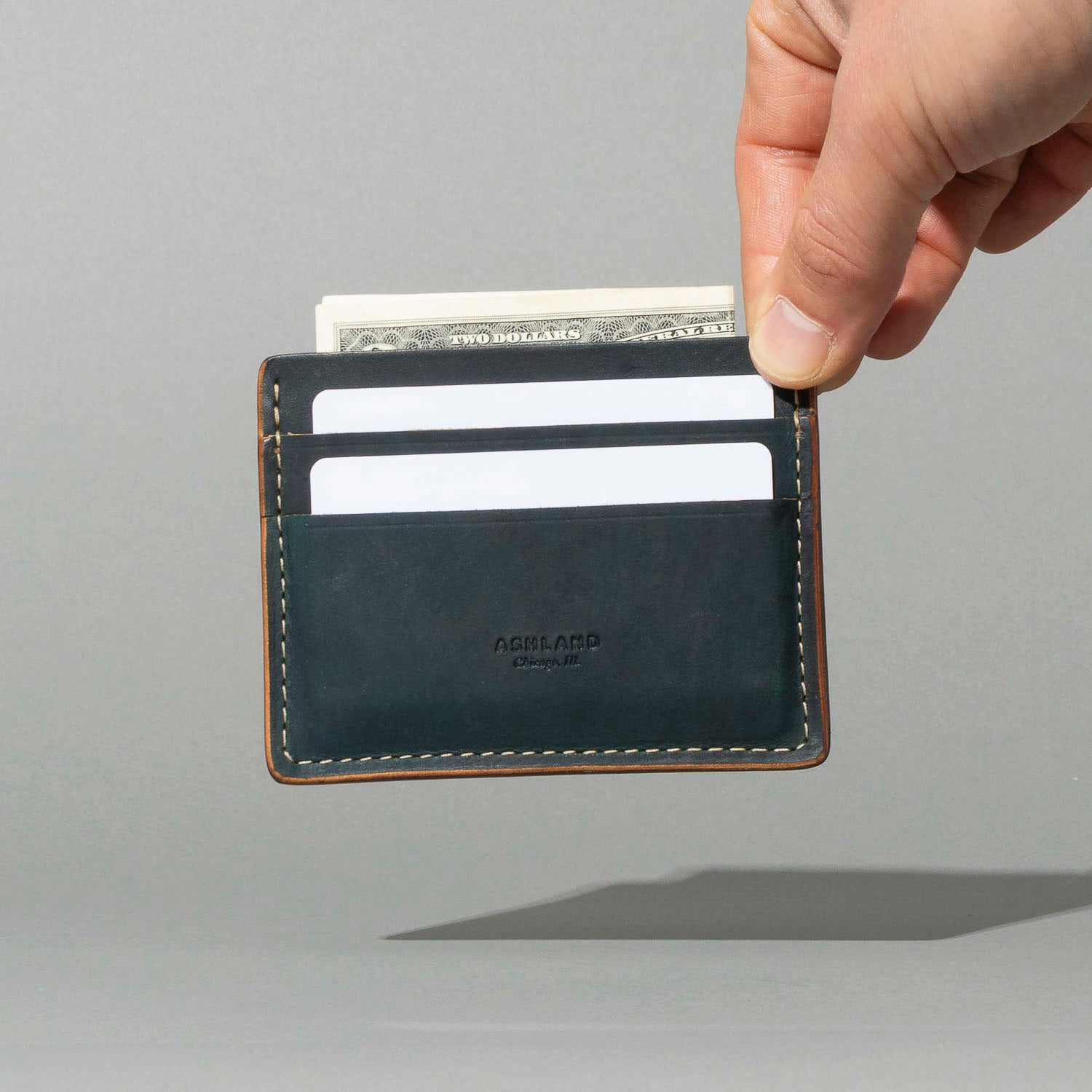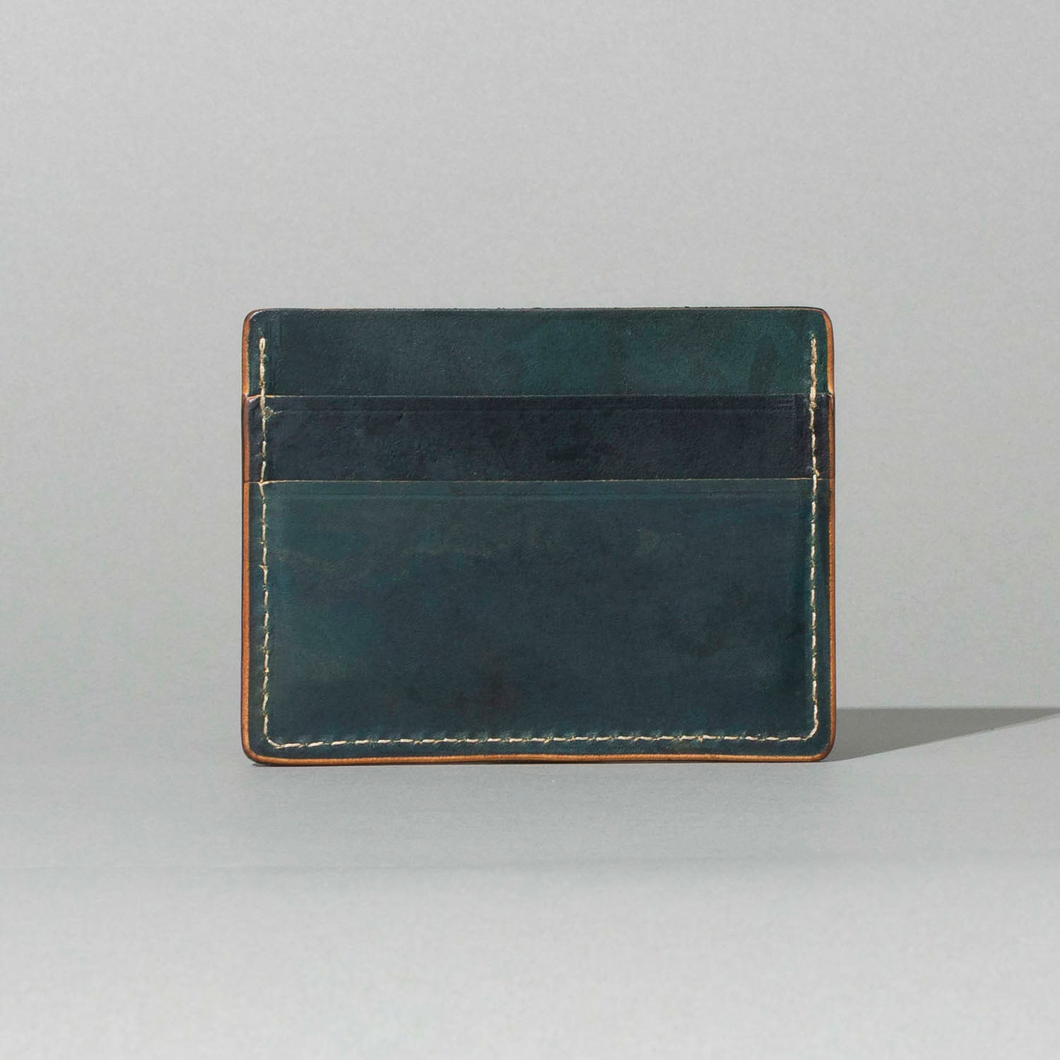 Extra card slot on the back. The ultimate minimalist leather card holder in a classic style. Handmade in Chicago from the finest Horween® leather. Frank the Enforcer provides the muscle for your essential cards and even a few folded bills in the large, middle slot.