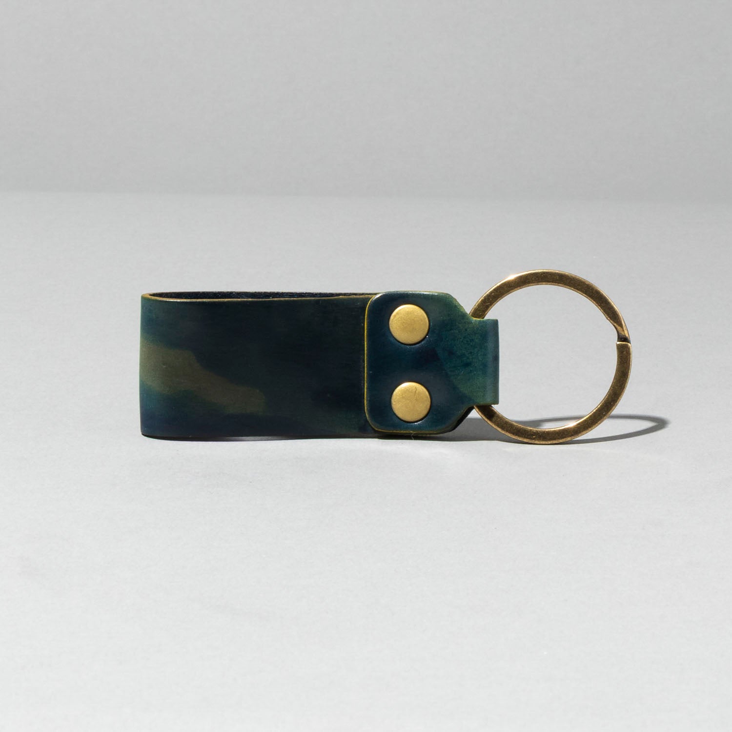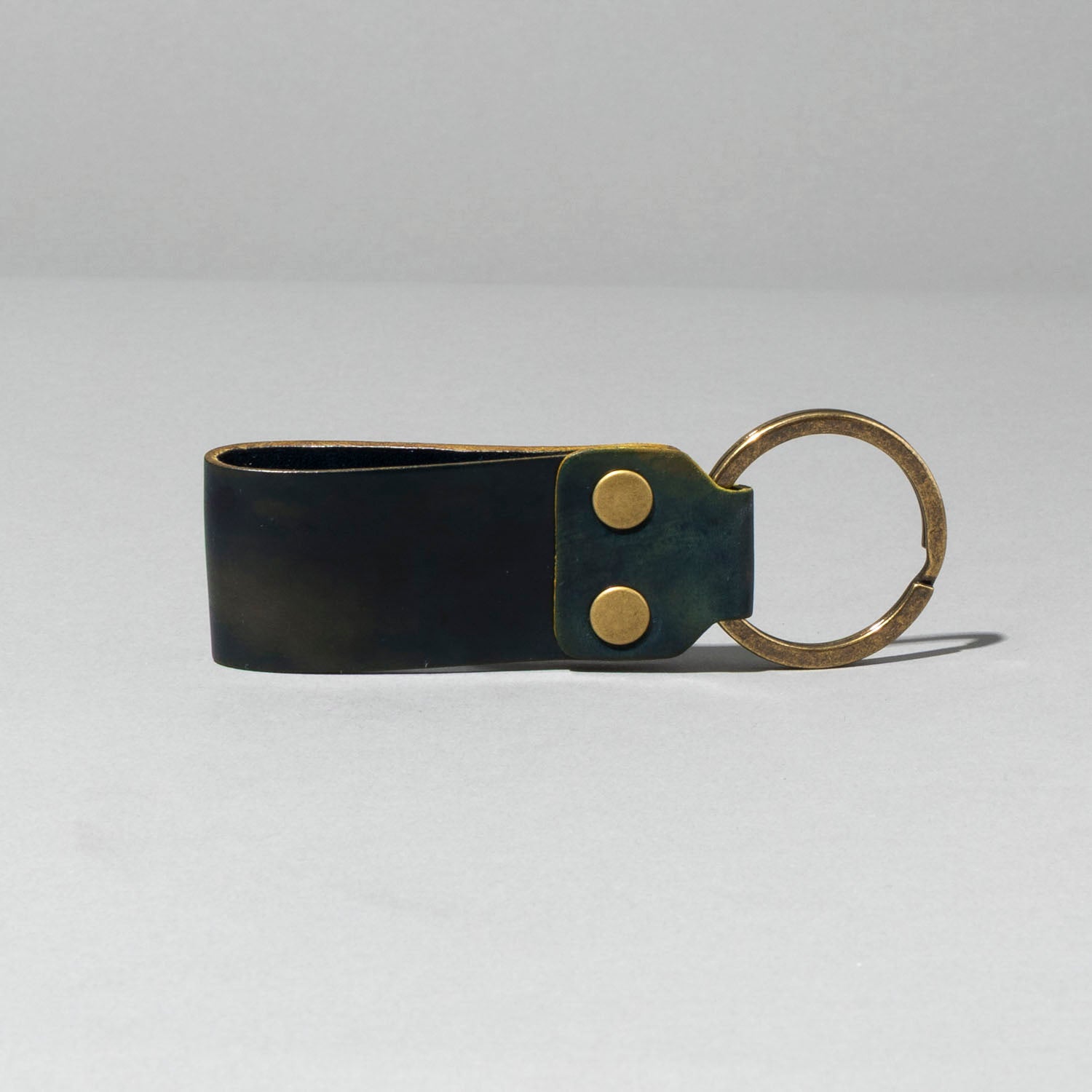 This key fob loop pairs purposeful design with uncompromising material selection. Built from two layers of Horween Shell Cordovan leather and anchored by a solid iron split ring secured with antique copper rivets, it delivers both reliability and refined aesthetics. The construction showcases the natural depth and aging characteristics of Shell Cordovan, making each piece a distinctive accessory that improves with use while keeping your keys secure and accessible.