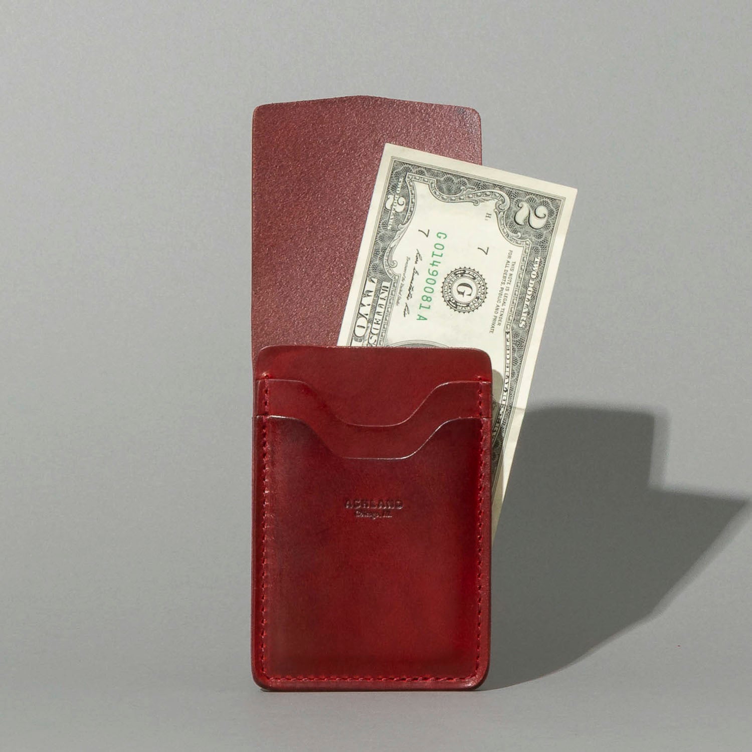 Believe us when we say Lucky means business. Named for the ruthless reorganizer of the Chicago mob, Ashland's Lucky wallet does away with extra details and leaves behind a slim, minimalist vertical wallet that works great for front or back pocket carry. This wallet features two card slots on the front and a single quick access card slot on the back, plus a large vertical cash compartment that's open on the side and protected by a tapered flap. Constructed of 100% Horween leather, this wallet is the ideal pick for the man who carries just what he needs and not much else. The more you carry the Lucky, the better it gets, as the compacting action in your pocket creates a natural crease in the top flap. Sleek, simple, visually surprising and surprisingly convenient.