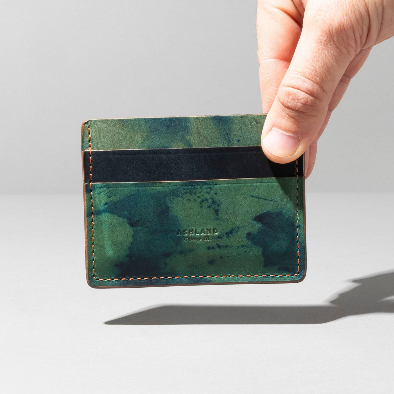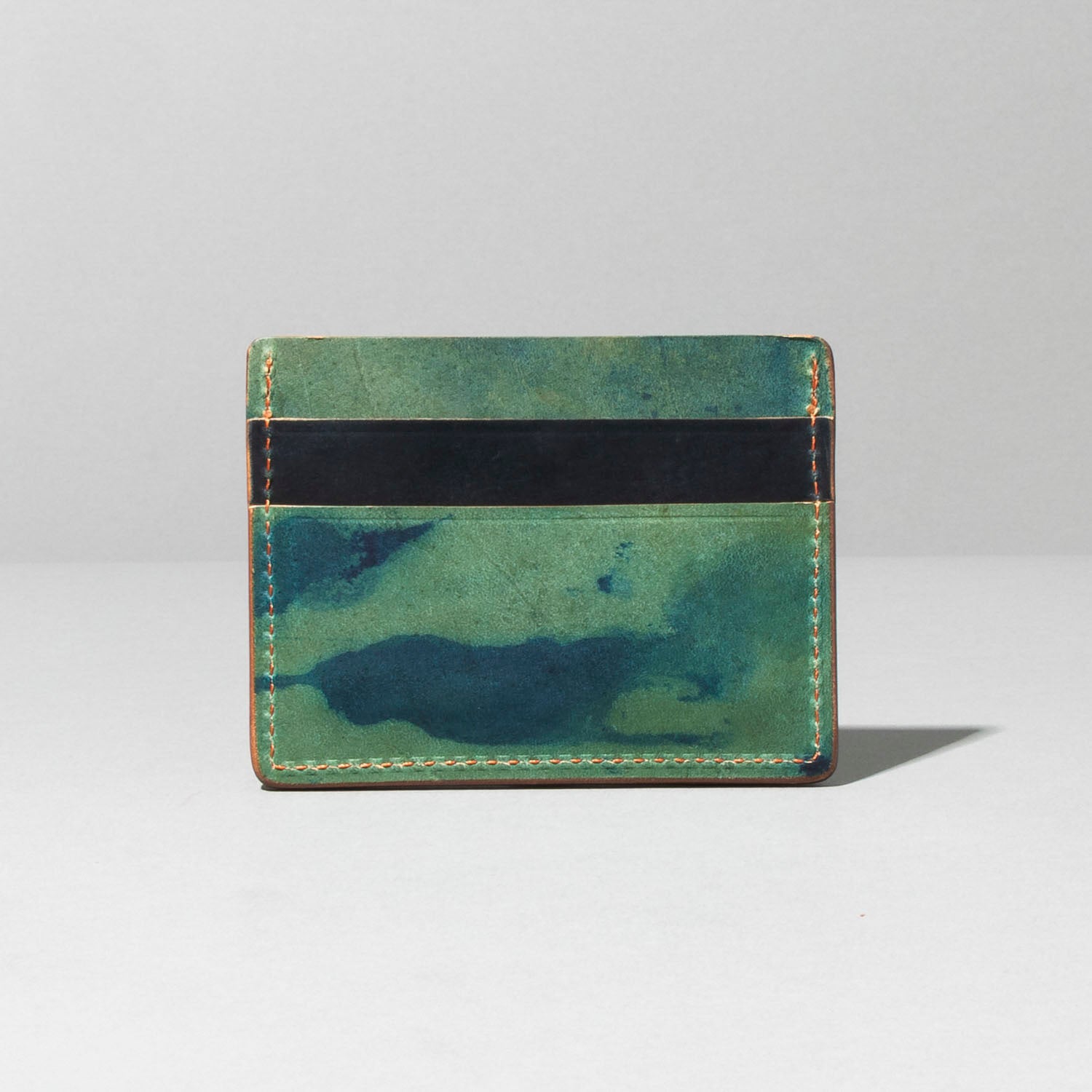 Extra card slot on the back. The ultimate minimalist leather card holder in a classic style. Handmade in Chicago from the finest Horween® leather. Frank the Enforcer provides the muscle for your essential cards and even a few folded bills in the large, middle slot.