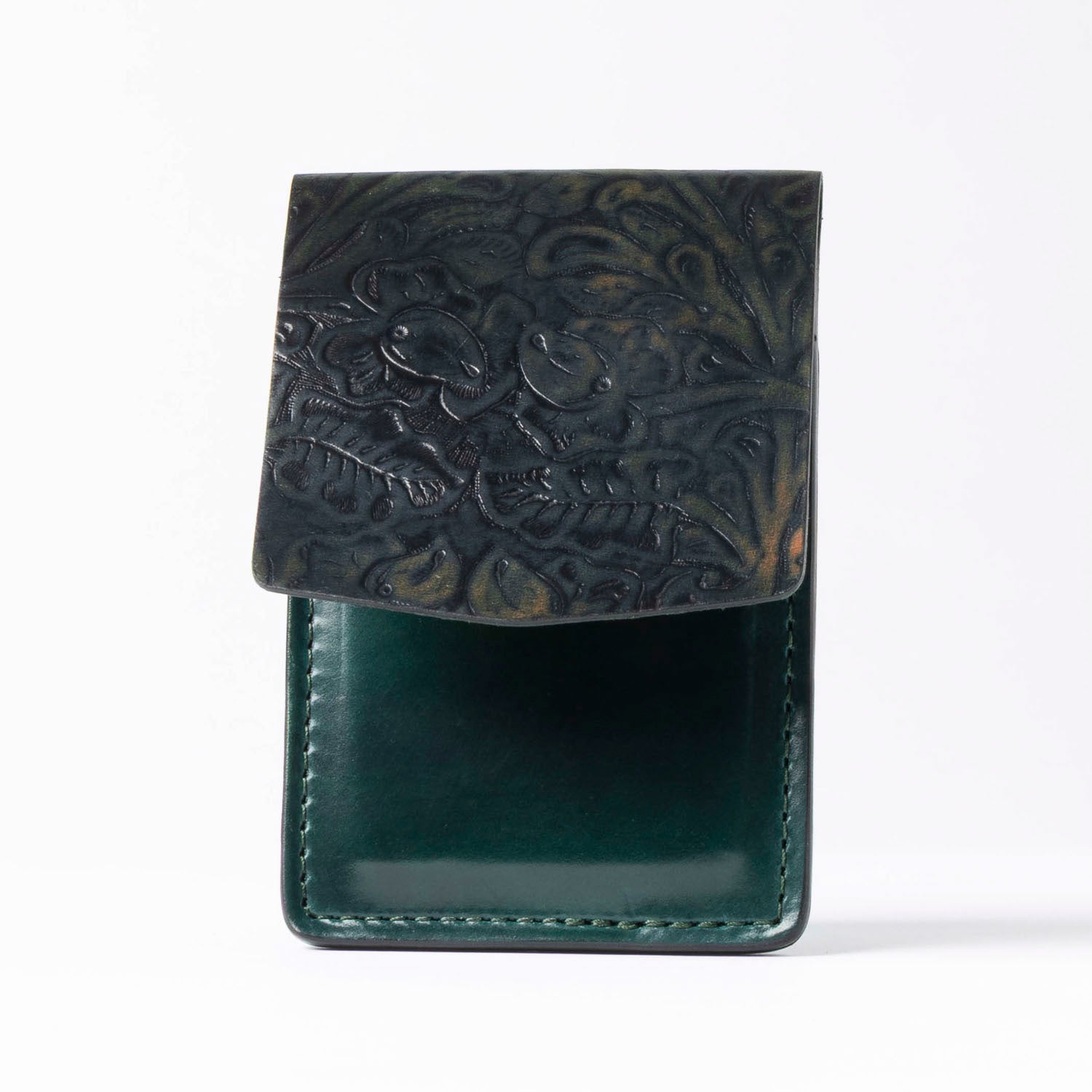 Believe us when we say Lucky means business. Named for the ruthless reorganizer of the Chicago mob, Ashland's Lucky wallet does away with extra details and leaves behind a slim, minimalist vertical wallet that works great for front or back pocket carry. This wallet features two card slots on the front and a single quick access card slot on the back, plus a large vertical cash compartment that's open on the side and protected by a tapered flap. Constructed of 100% Horween leather, this wallet is the ideal pick for the man who carries just what he needs and not much else. The more you carry the Lucky, the better it gets, as the compacting action in your pocket creates a natural crease in the top flap. Sleek, simple, visually surprising and surprisingly convenient.