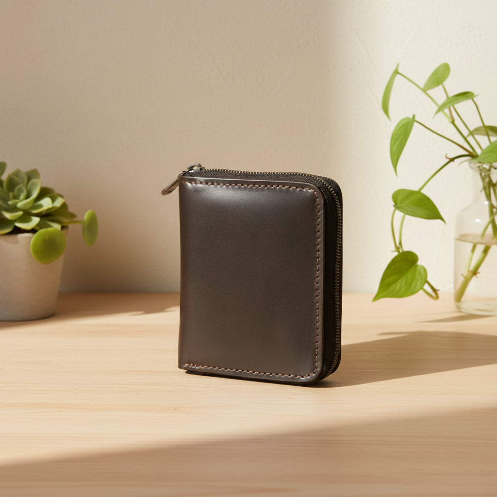 High capacity expandable carry with a secure zip closure. Our small zip wallet is made in Chicago using the finest Horween® leathers and premium Riri zippers. Designed to carry 16 cards, coins, cash, and Apple AirTags.