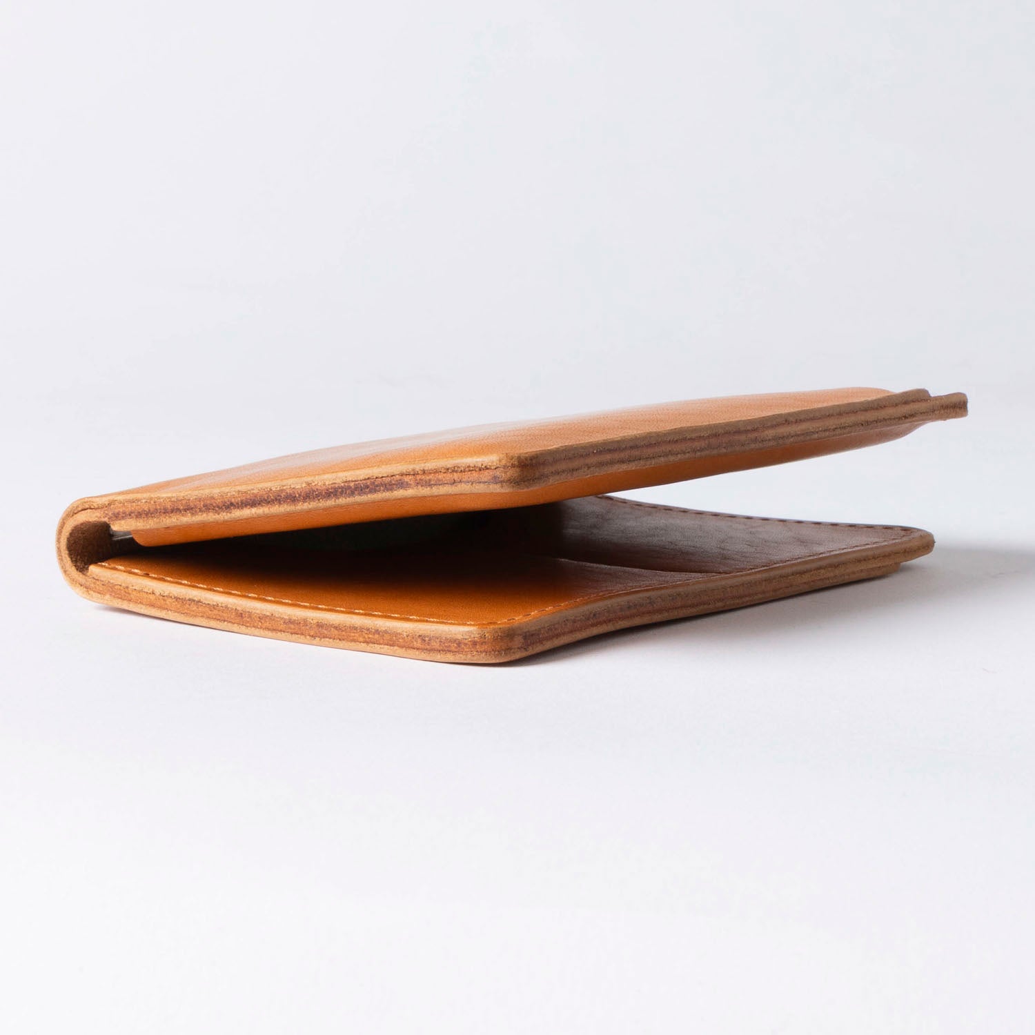 Designed for global adventurers, the Traveler passport holder combines the functionality of a passport case and wallet. It accommodates all international paper currencies along with your passport essentials. Expertly handcrafted in Chicago using premium Horween leather, it features a designated passport compartment, two card slots, and a generously sized exterior bill pocket.