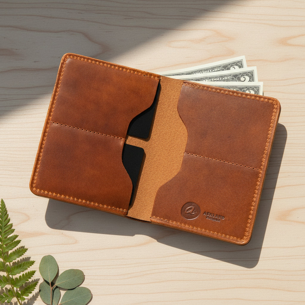 The Fat Herbie is a modern billfold wallet designed with a clever, functional layout. Its unique card configuration, which avoids stacking, keeps this flagship model surprisingly slim even when packed, making it an excellent option for carrying in your back pocket.